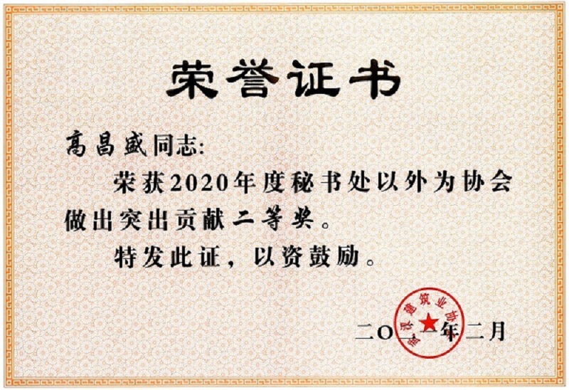 高昌盛獲2020年度秘書(shū)處以外為協(xié)會(huì)做出突出貢獻(xiàn)二等獎(jiǎng)